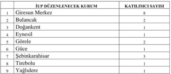Başvuruların 17 Ocak’ta (yarın) başlayıp 5 gün süre içinde yapılacağının aktarıldığı açıklamada, “Giresun Çalışma ve İş Kurumu İl Müdürlüğünce, ilimiz genelinde faaliyet gösteren Giresun İl Kültür ve Turizm Müdürlüğünde belirtilen kontenjan dağılımına göre, 2.02.2026-28.11.2026 tarihleri arasında, 10 ay süreli, toplam 20 kişiye yönelik İşgücü Uyum Programı (İUP) düzenlenecek. Başvurular; 17.01.2016 tarihinden itibaren 5 gün süre ile e-Devlet, İŞKUR e-şube (https://esube.iskur.gov.tr) veya ALO 170 iletişim hattı üzerinden yapılacaktır” ifadelerine yer verildi.